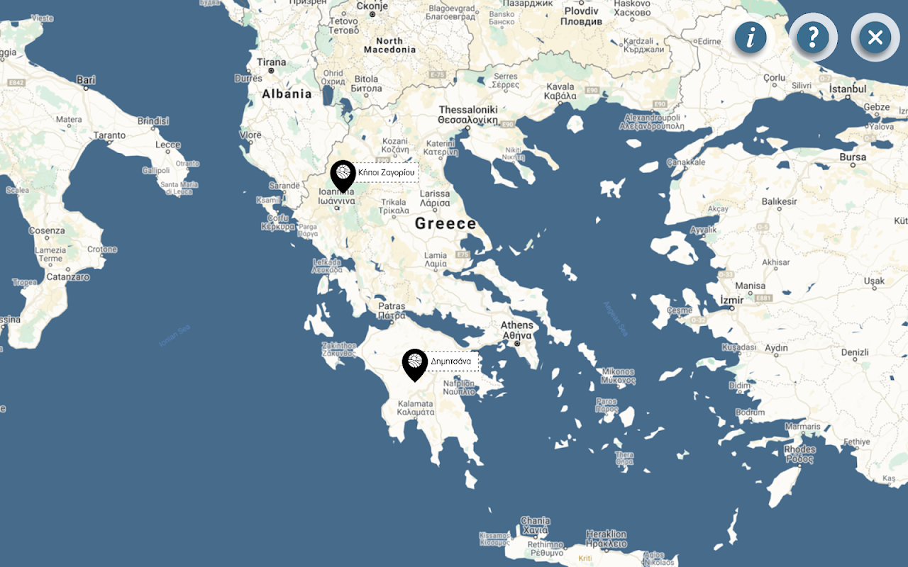 Apps main theme is about heritage interpretation stories under the titles of: " 'Our' cultivation that protects common people." (Dimitsana) and "The circle of life defines the course of route"(Zagori Gardens). Both titles were selected by authorized personnel in order to promote the agriculture heritages of both places and their people respectively .