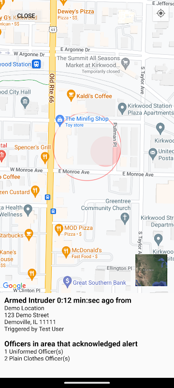 The app alerts the officers, displays a mapped location of the school, reports how many uniformed and plain clothes officers have acknowledged the alert AND provides a timer from the onset of the initial alert.