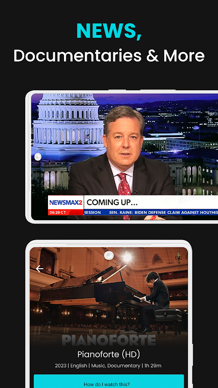 We combined the best elements of TVOD, AVOD, and FAST channels so you have all the content you need at your fingertips - from news to latest movie releases.