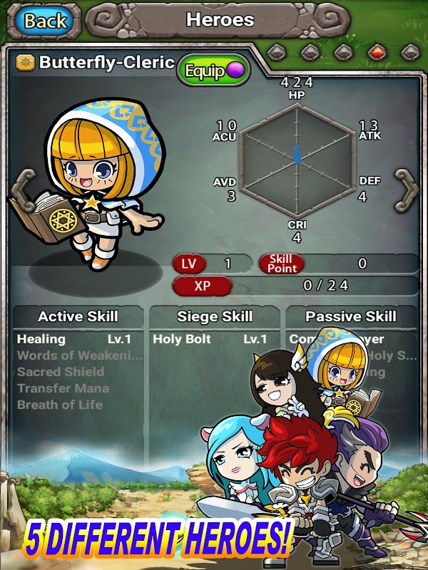 - Hero training is as strong as you: Train your hero with many skills and strengthen the fuss to get through.