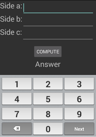 Heron's formula: √(s*(s-a)*(s-b)*(s-c)) where s is (a+b+c)/2. From my trigonometry class I learned that Heron's formula wasn't hard. Just tedious and time consuming. And I thought there should be an app for that. So in about an hour I wrote one. And here it is, prettied up a bit of course. You also have the ability to control the precision of the answer. You can display up to 8 numbers behind the decimal point. Now properly rounded. *Note: it does not work with just any numbers. Because not all combinations of numbers create a triangle. But it should still work for any homework problems :)