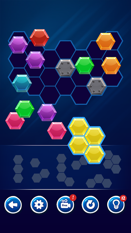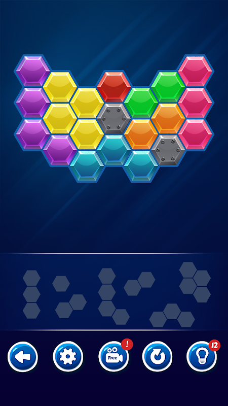 Hexa Block is a free block puzzle game. The unique hexagon puzzle board is a fun challenge even for the advanced puzzler.