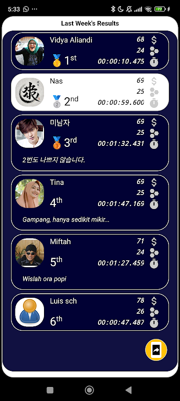 In this challenge, players compete for the best score, though they don’t need to play at the same time. Each week, the top player is selected, and participants can repeat the challenge if they think they can improve their rank.