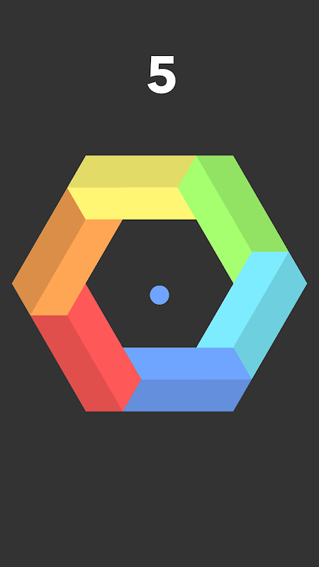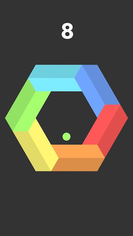Tap to rotate the hexagon, match the color of the ball with the section of the same color. How long can you last?