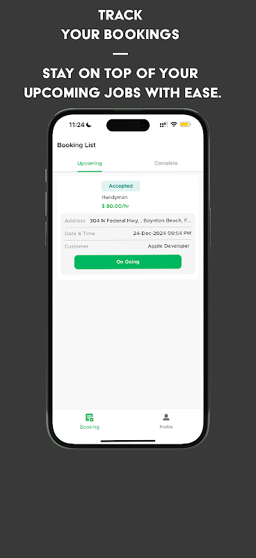 Booking Management: View, accept, and manage assigned bookings directly from the app. Keep track of ongoing, upcoming, and completed tasks with detailed summaries.