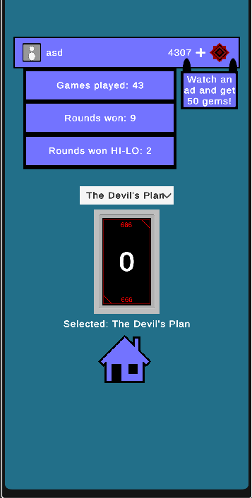 The application contains cosmetic items for purchase using gems obtainable in the game by winning rounds of Hi-Lo.