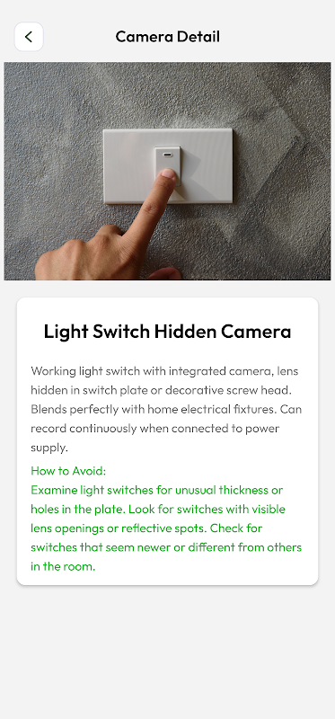 Whether you're staying in a hotel, Airbnb, work space, or any unfamiliar location, this tool empowers you to detect hidden camera threats and regain peace of mind. Use it as your trusted spy hidden camera locator anytime you need to stay safe.