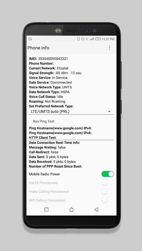 Explore internal phone network info & advanced network type control (LTE Only,2g, 3g only, etc).