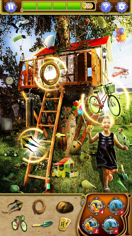 Find mysterious items throughout the world that can help you in your hidden objects quest. Use magic rings to help find hidden objects, quaff potions to apply temporary boosts, and use spells to recharge your energy.