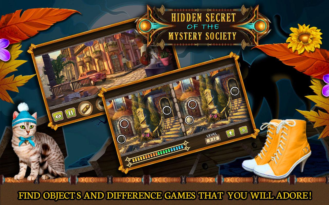 Welcome to hidden object 200 levels world of the secret mystery society. If you like mystery society games and you're ready to discover secrets in the house, you're at the right place! Our unique hidden objects game hidden secret of the mystery society offers you a chance to find a hidden object and find differences from two pictures!
