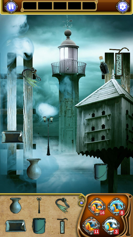 Find mysterious items throughout the world that can help you in your hidden objects quest. Use magic rings to help find hidden objects, quaff potions to apply temporary boosts, and use spells to recharge your energy.