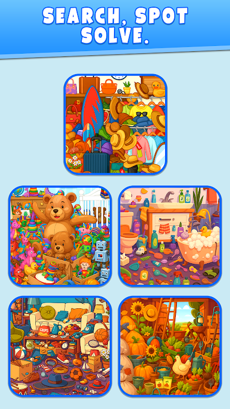 Hidden object: Tidy master is a fun game where you look for missing items in different rooms. Each level has a list of things you need to find. Once you find them all, the room becomes clean and tidy! It’s a game that helps you relax, focus, and enjoy the Joy of organizing the untidy rooms.