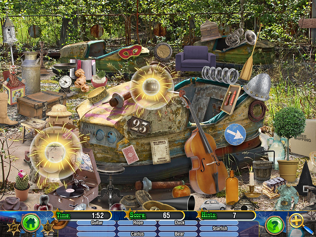 Ghostly Hidden Objects game! Explore Haunted Ghost Towns, Abandoned Mansions, and Eerie Amusement Park levels! Search Haunted Mansions, Ghostly Towns and more.