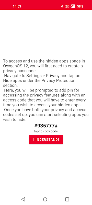 In the new version of OxygenOS (12), you need to create a special code and enter the code by dialing the number. This makes it difficult to access them.