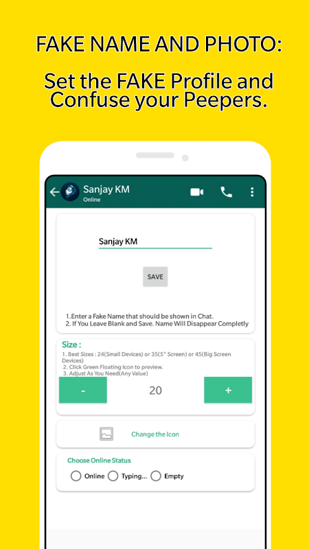 * Now you can Add Fake Name, Give Fake Profile Picture, Show a Fake Status.