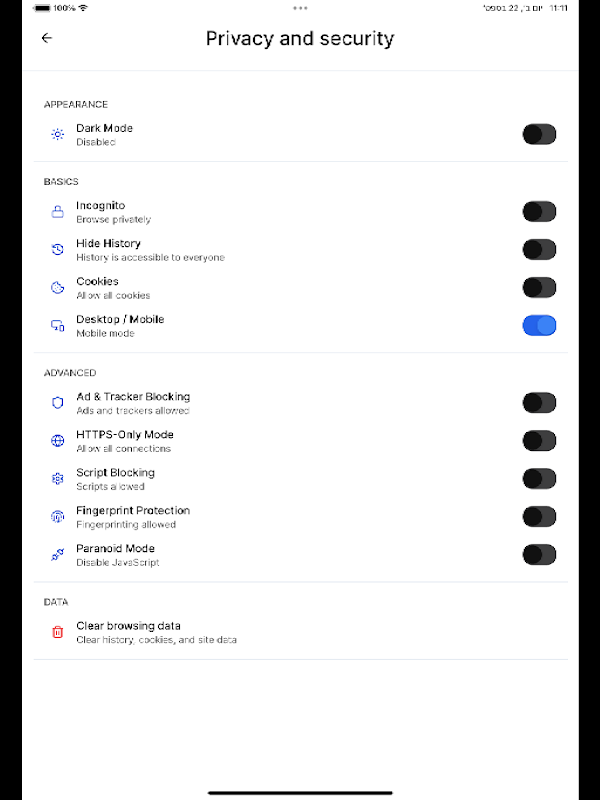 Fingerprinting Prevention: Your device cannot be tracked.