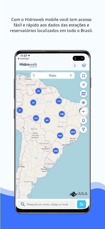 The HidroWeb mobile application is an integral tool of the National System of Information on Water Resources (SNIRH, http://www.snirh.gov.br/) and allows access, in this first version, to telemetric data collected by the National Hydrometeorological Network ( RHN), gathering data levels and flows of rivers and rains throughout the national territory. It is an important tool for society and public and private institutions, since the data collected by hydrometeorological stations are essential for the management of water resources and in various economic activities, such as power generation, irrigation, navigation and industry, besides the design, maintenance and operation of small and large hydraulic infrastructure such as dams, urban stormwater drainage and even culverts and roofs.