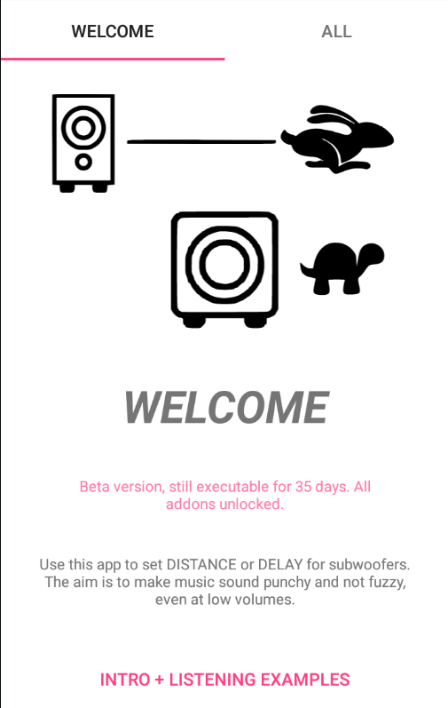 Get the maximum out of your subwoofer. Many receivers today offer automatic calibration of subwoofers and speakers. This app takes you to the next level. Start a few listening tests and a measurement. You will receive the necessary adjustment parameters and can also evaluate different set-ups (room corner, wall...) and subwoofer combinations. A favourable placement creates a solid physical foundation. Only then the use of DSP(digital signal processing) for the final touch is worthwhile. Wrongly placed equipment will always sound unsatisfactory, even if it was expensive and is replaced by more expensive equipment. Sound engineers have been trying for decades to transport this painful truth to the end user. The app is meant to make a contribution to this.