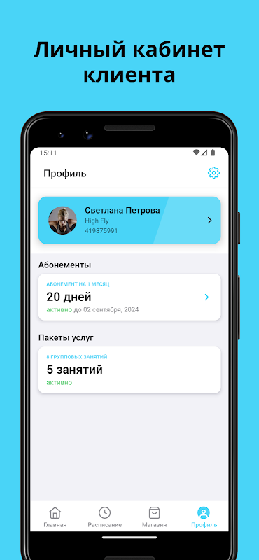 - Sign up or cancel your registration for group and individual classes easily and quickly directly through the application.