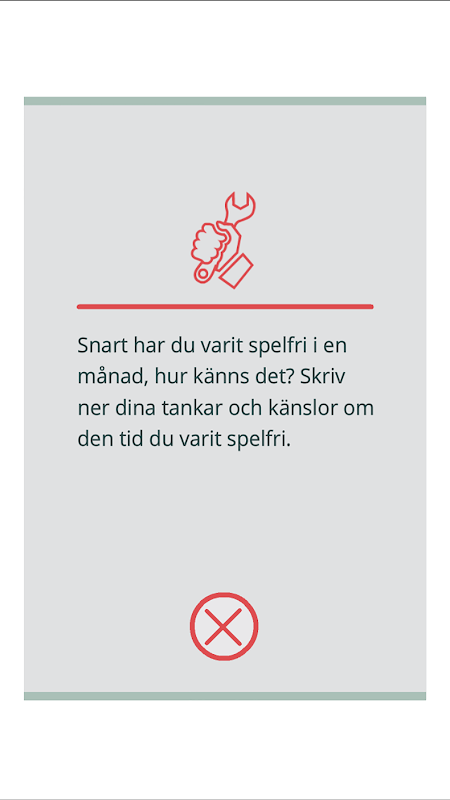 Med hjälp av vår klocka kan du hålla koll på hur länge du har varit spelfri. För att hålla motivationen uppe får du meddelande från oss med medaljer för avklarade dagar, pepp, tips, stöd och praktiska verktyg för att hålla dig borta från spelet.