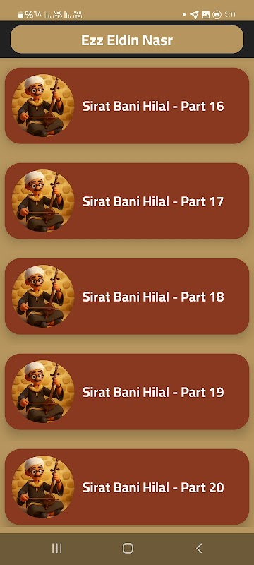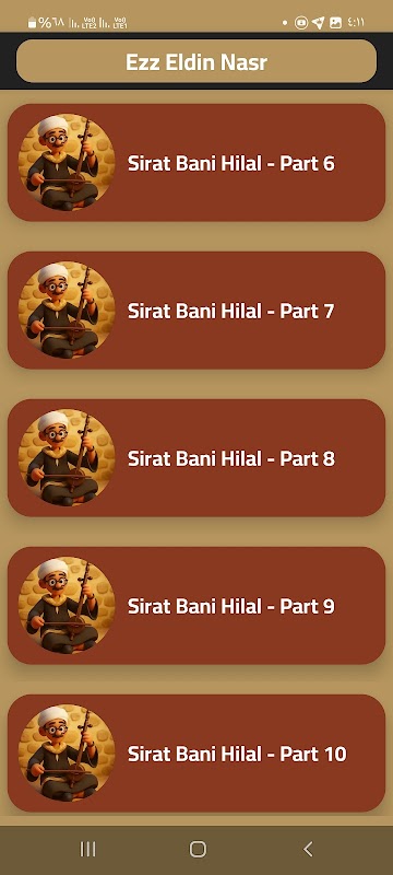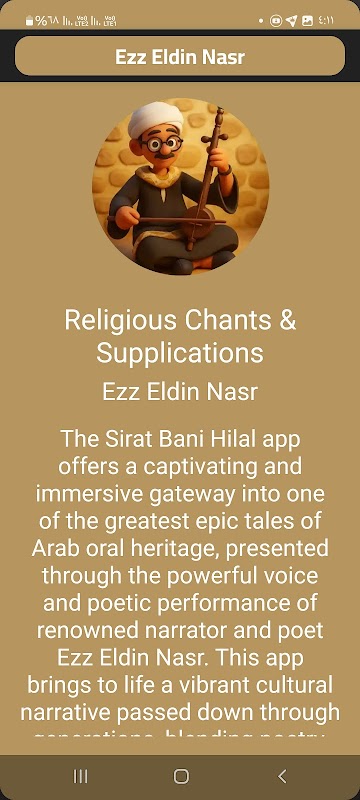 This app features the full Hilali Epic performed by folk narrator and chanter Ezz Eldin Nasr. Experience the legendary tale of Abu Zayd Al-Hilali and Bani Hilal in traditional poetic style and high-quality audio