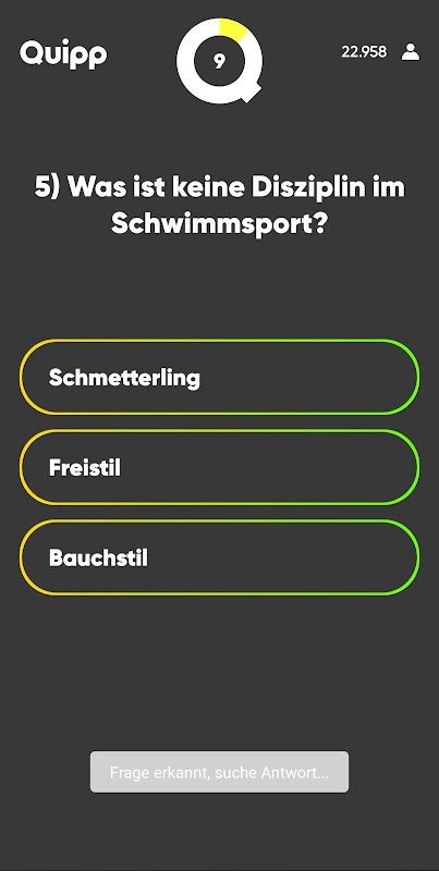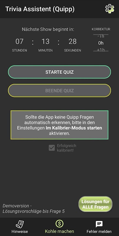 "Quipp Hilfe" nimmt während der Show deinen Bildschirm auf, erkennt wann sich eine Frage auf dem Bildschirm befindet und zeigt dir innerhalb weniger Sekunden die (relativ wahrscheinliche) Lösung an.