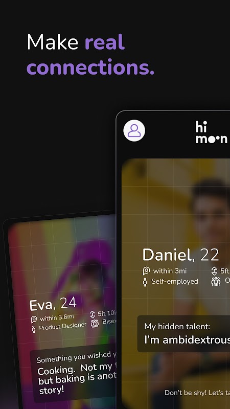 Personality over pixels - are you curious? HiMoon is the new dating app for the entire LGBTQ + community. Whatever your gender, or your preferences, you’re welcome!