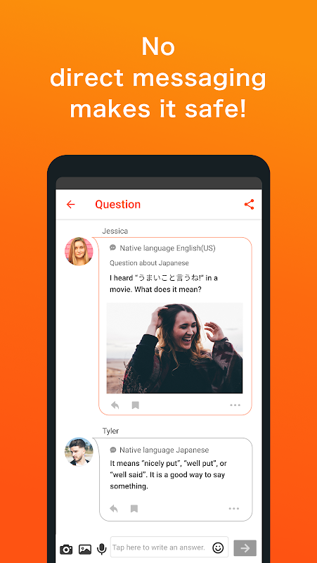 Correction Function - Have your writing corrected by native speakers!When you post in your target language, native speakers will show you natural ways to say what you want to say.
