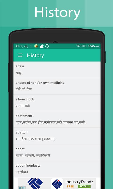 This is the digital era and it brings the whole world in your cell phone. Welcome to the Language world, a free Hindi to English dictionary with a database of 73000 words and if you want to know the real Hindi meaning of any English word than this application is best for you. If you are on travel and face any poor internet access area, Hindi Dictionary can be accessed offline and is the best solution for you. Meaning of any word is explained in detail with example and proper translation.