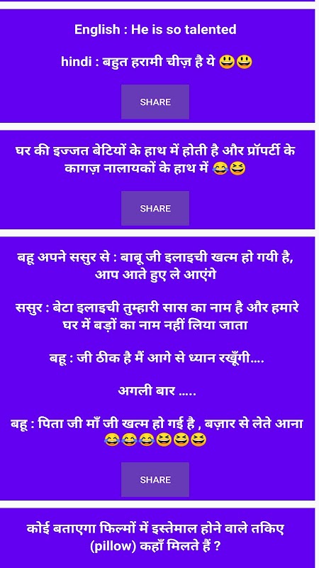 This app contains hindi jokes
