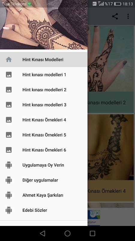 Hint Kınası örnekleri uygulamamızı internetsiz her yerde kullanabilirsiniz. Özel düğünlerde kına gecelerinde festivallerde Hint kınası örneklerini kullanabilirsiniz. Hint Kınası Modelleri son zamanlarda daha çok kullanılabilmektedir. Özellikle kadınlar ve gençler için kullanabileceğimiz Hint Kınası örnekleri uygulamamızda mevcuttur.