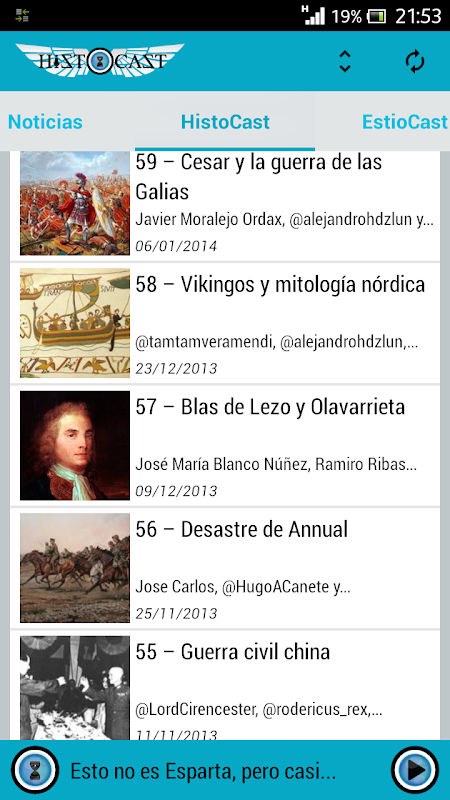 Con la app de HistoCast podrás escuchar y descargar nuestros podcast directamente en tu SmartPhone, así como estar al tanto de las últimas noticias. Desde HistoCast esperamos que os sea de gran utilidad.