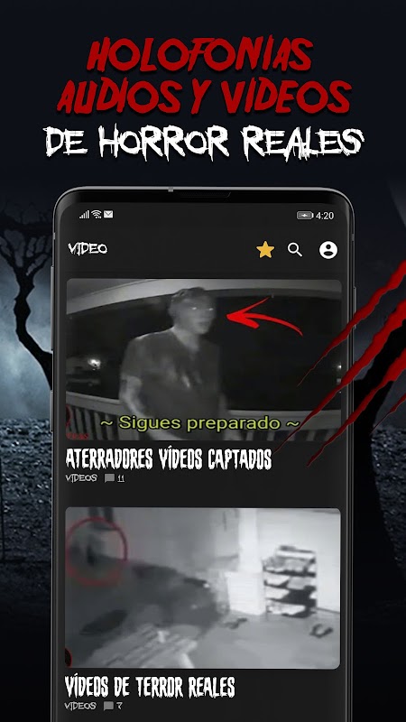 The horror stories. Legends, creepypastas and stories, you do not need an Internet connection to enjoy them, save them with the plus icon to view offline.