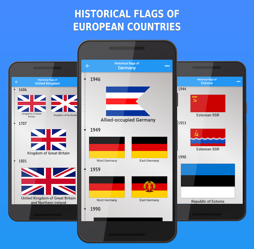 Do you know what your country's flags have looked like over the years. This application is there to check it. The application contains all the historical flags of each country. Countries are grouped into regions corresponding to continents.