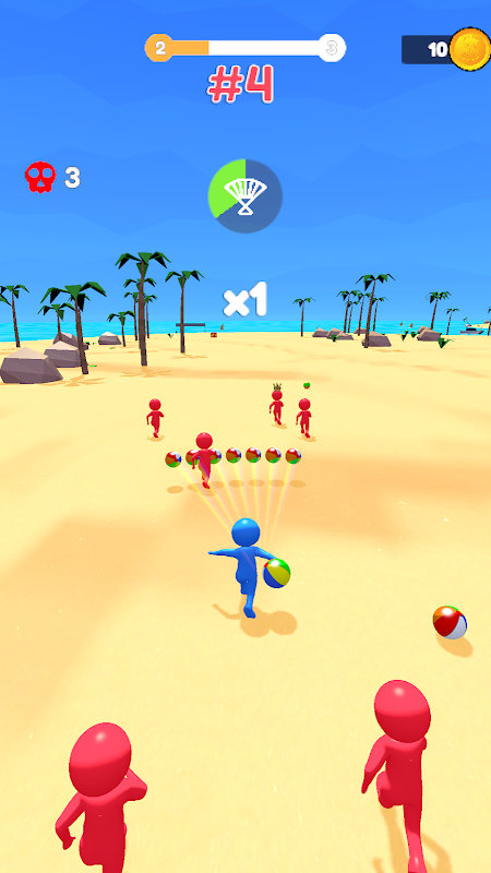 As you run, you'll need to keep an eye out for power-ups that will give you an edge. Maybe you'll find a super-sized beach ball that will knock out multiple opponents at once, or a bomb ball that allows you to blow past the competition. But be careful, because your opponents will get smarter with time.