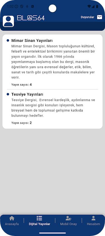 The mobile application of the Association of Free and Accepted Masons is designed to facilitate our members' access to information and strengthen communication. Thanks to this application, you can read our digital publications, follow our periodicals, be informed about our announcements and perform various operations via your mobile devices.