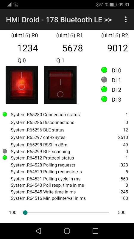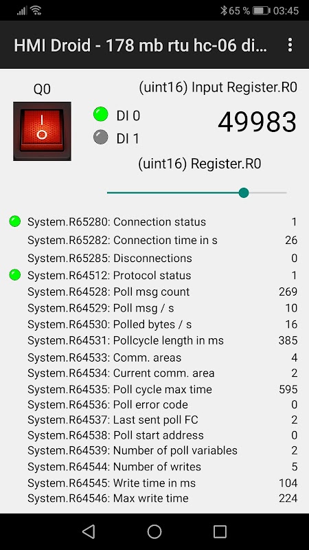 HMI Droid is an evolution of the HMI program LEDpanel for Windows and is a supplement or alternative to traditional SCADA systems and operator panels. It handles logical and numerical variables and has easy navigation between panels (pages) using swipe gesture or with buttons.