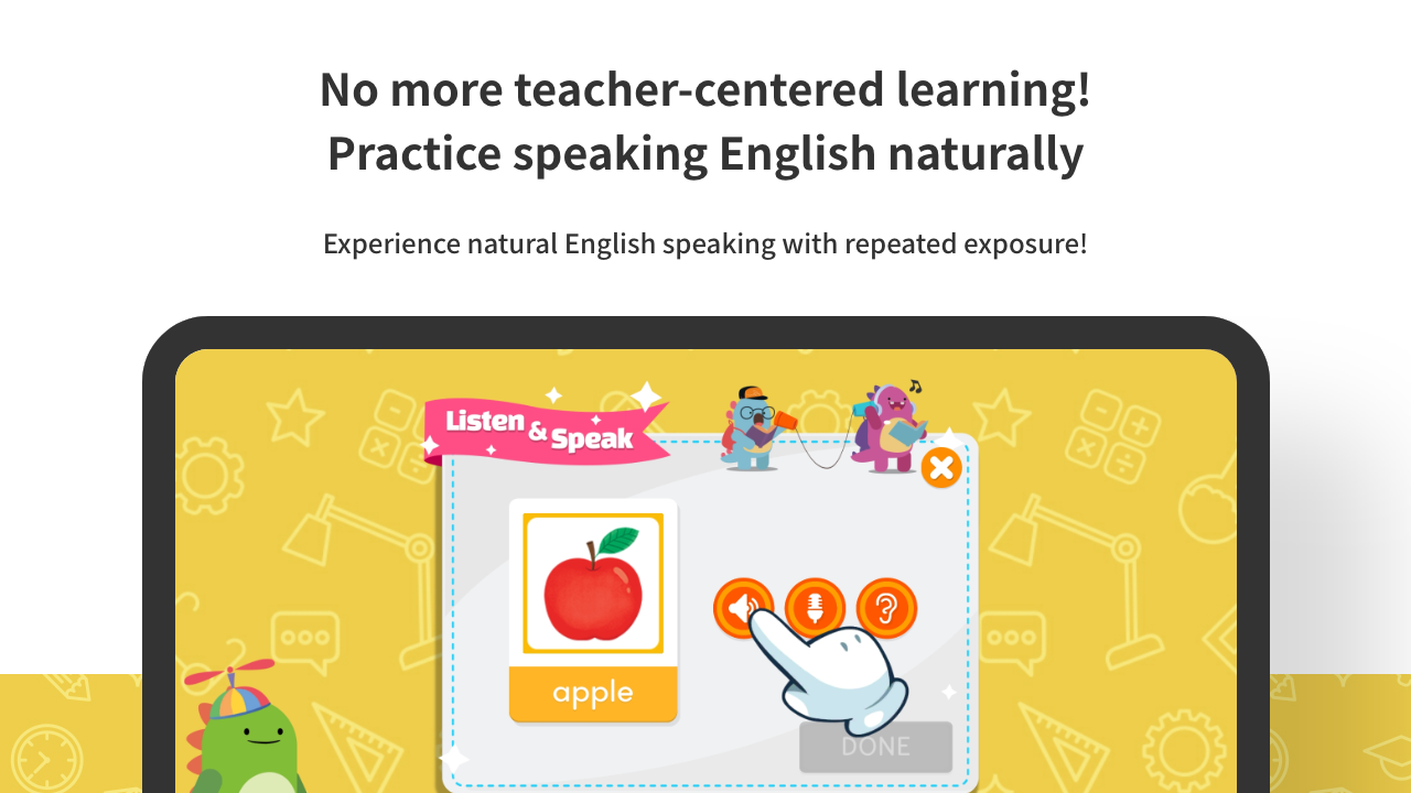 * The learners can learn Alphabet and phonics with a character other than a teacher with no pressure.