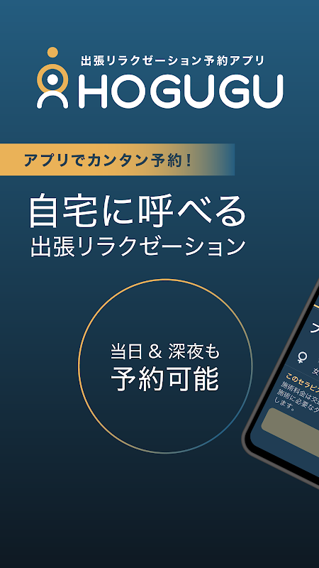 HOGUGU is a business trip relaxation app that allows you to easily call a therapist to your location.