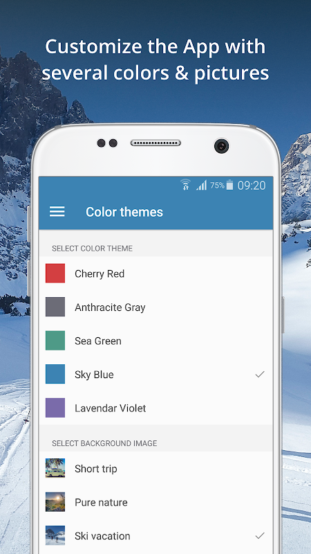 Customise the Holidays and Vacations 'App by selecting your favourite color and background picture.