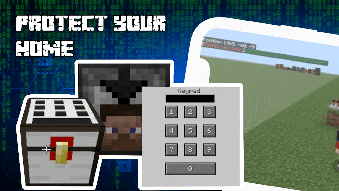 The addon Home Security mod for Minecraft is something that has been lacking for a long time for the survival mode. Your secrets house, resources and secrets block / blocks will be under the control of the addon House protection mod for Minecraft. In the house you can put a security code that will protect your front door MCPE Bedrock. Home protection addons and mods security for Minecraft provide maximum security, even for the most unprotected safety building in survive mode.