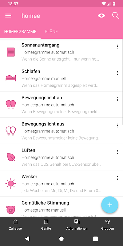 With homee you can control various smart home products from different wireless technologies and manufacturers in your home. Currently homee supports WLAN, Z-Wave, EnOcean, Zigbee and Hörmann BiSecur.