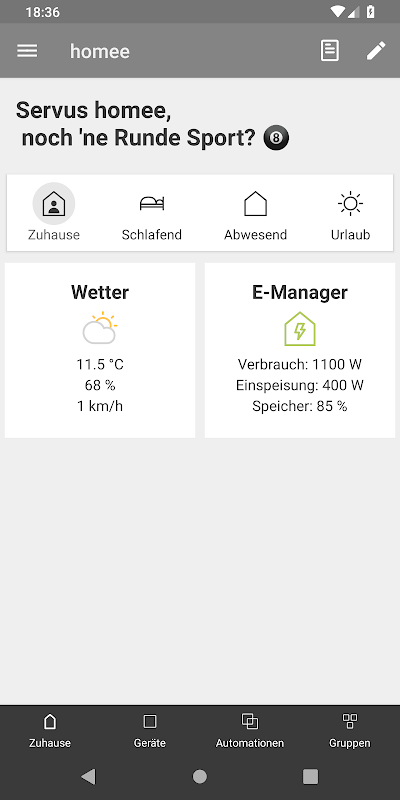 The app has a number of additional features in addition to the usual home functions. You can create your own energy saving plans and select ready-made energy saving plans which help the user to save energy. In combination with a smart meter, many more functions are available in the app.