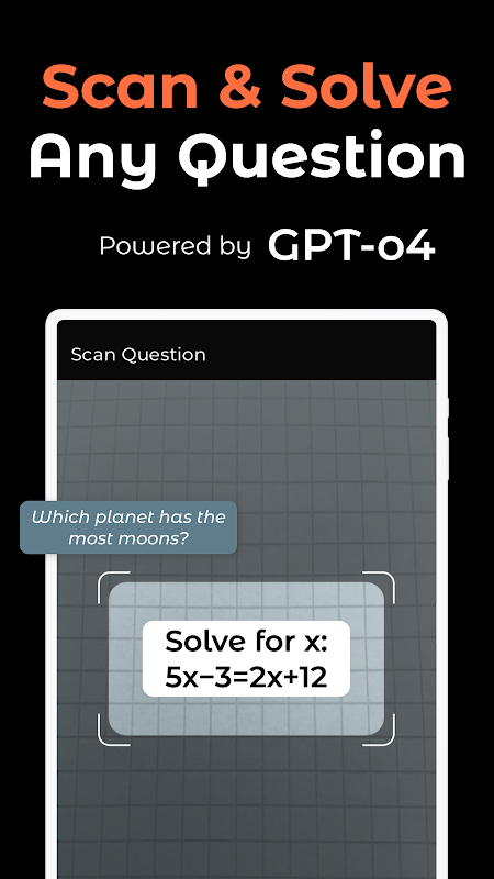 Scan or ask AI for instant answers to math and general questions. Fast help!