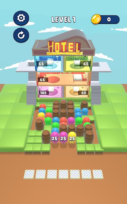 Welcome to Hotel Jam, a challenging and strategic puzzle game that will test your matching and management skills! In a grid filled with people bearing different prices, use your wits to match characters of the same price. When two characters with the same price become neighbors, they merge into higher-priced guests. Accommodate them in the hotel rooms at the top of the screen by reaching their desired price. Can you efficiently manage and fill all the rooms to create a bustling hotel?
