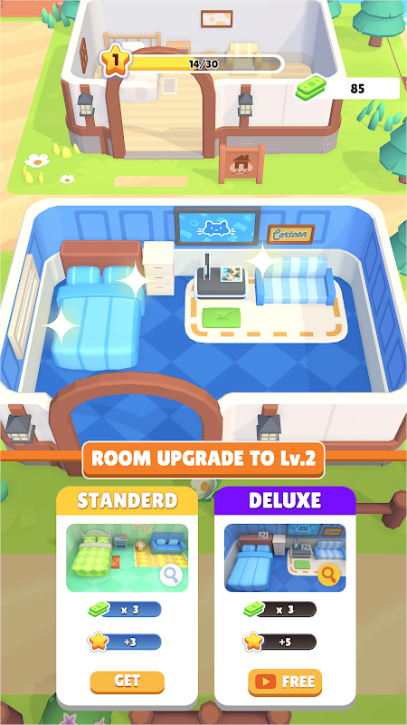Start from managing a simple room, greeting guests at reception, collecting payments, and cleaning the rooms by yourself. With the income increased, upgrade the rooms and employ staffs to help you to run the hotel. With all your efforts, your dream of developing a hotel empire will come true soon.