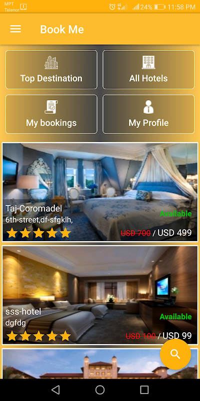 Online hotel booking app