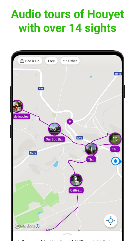 SmartGuide won’t let you get lost and you won't miss any must-see sights. SmartGuide uses GPS navigation to guide you around Houyet at your convenience at your own pace. Sightseeing for the modern traveler.
