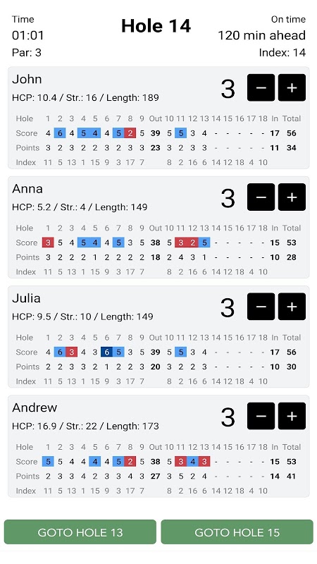 - Decide your Tee box on the first Tee without having to check the Handicap Table in the Clubhouse.