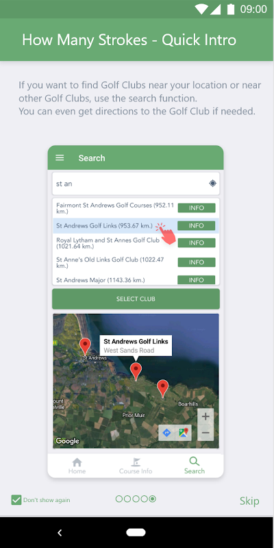 - Build in Scorecard for up to four player. Can be shared with Golf Club and Playing Partners